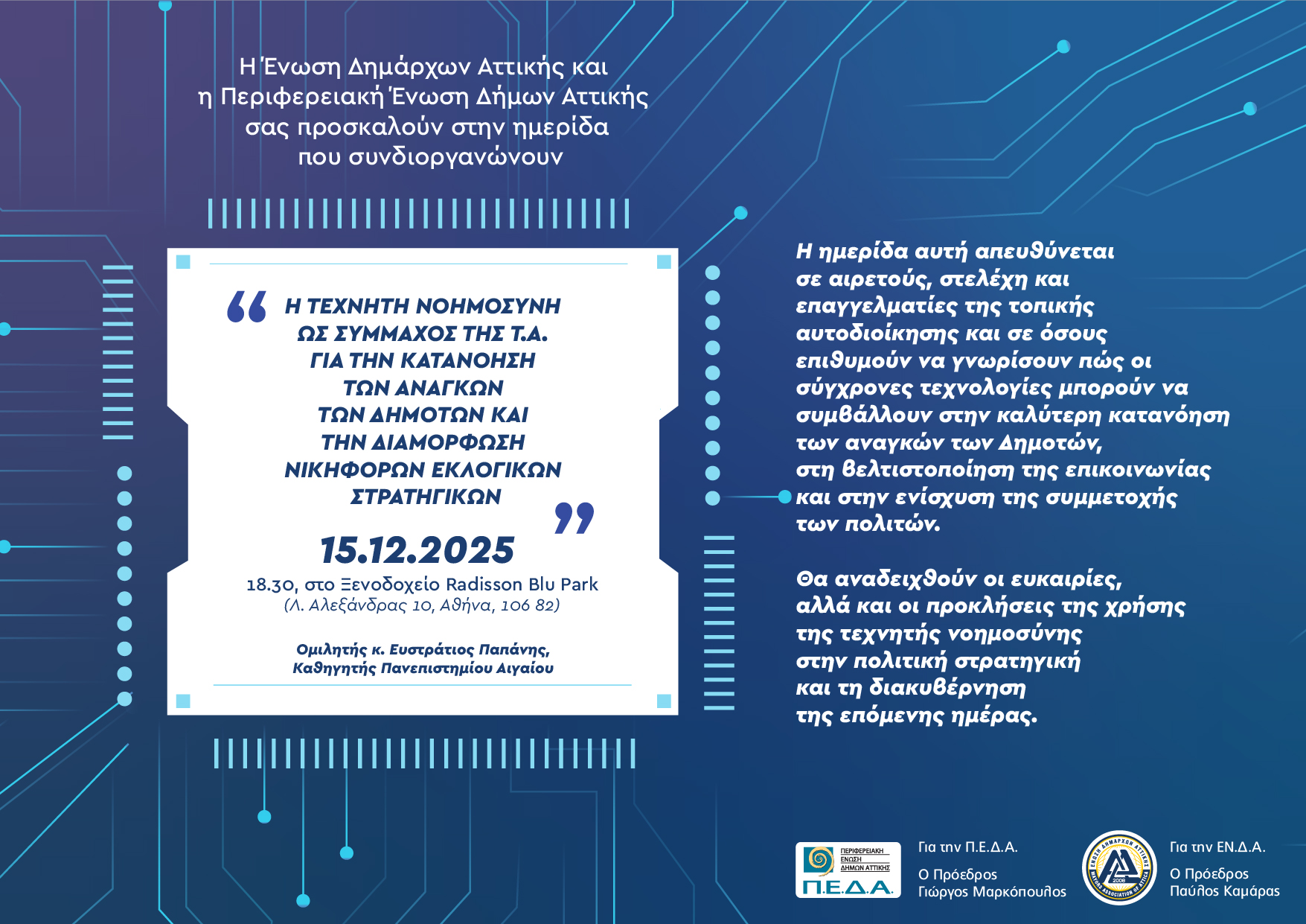 Ο Όμιλος Προετοιμασίας Στελεχών Αυτοδιοίκησης (Ο.Π.Σ.Α) σε συνεργασία με τον Δήμο Ηλιούπολης και την Ένωση Δημάρχων Αττικής, διοργανώνει την Τετάρτη 11/12/2019 και ώρα 18:30 εκδήλωση, με θεματική ενότητα: